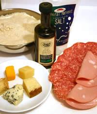 | 生ハム.COM≫ 生ハム料理のレシピ集≫ お好みサラミとチーズの3種ピザ | |