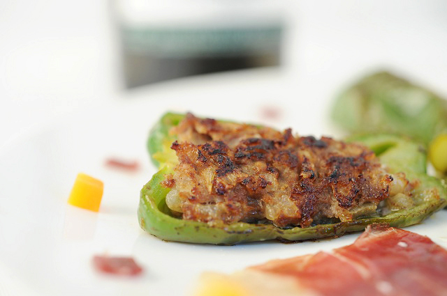 | 生ハム.COM≫ 生ハム料理のレシピ集≫ 生ハムの温かいおつまみ≫ べジョータ脂で作るピーマンの肉詰め | |