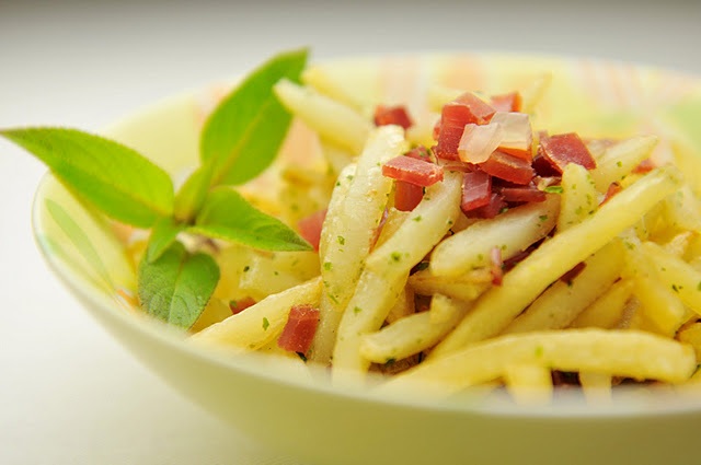| 生ハム.COM≫ 生ハム料理のレシピ集≫ 生ハムのおつまみ≫ 生ハムとのり塩フライドポテト | |